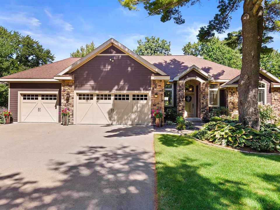 Welcome to your dream home! Step into this exceptional property, where every detail has been meticulously designed to create an entertainer's delight like no other. This exquisite property boasts a kitchen remodel by Welling Kitchen, Bath and Floor. The heart of this home is its stunning kitchen, featuring soft-close cabinets, walk-in pantry, stainless steel appliances, and a Thermador gas range with double ovens and 6 burners, complete with a griddle. The spacious 8x7 center island with quartz countertops and subway tile backsplash is perfect for culinary creations. With an open floor plan, the kitchen seamlessly flows into the living room, anchored by a two-way stone fireplace adorned with a mantle crafted from reclaimed barn beams. Gorgeous hickory floors in the kitchen living room and dining area. Soaring 11-foot ceilings in the living room and dining area add an air of grandeur, complemented by top-of-the-line finishes throughout.,The primary bedroom is a true retreat, boasting a Welling remodeled en suite that's nothing short of a spa-like oasis. You'll be captivated by the stunning iridescent glass tiles, and the 5-foot walk-in shower is a masterpiece in itself. The water closet, complete with a transom window, adds privacy while allowing natural light. The primary walk-in closet is thoughtfully designed with high-end built-ins, catering to your storage needs. Also, on the main floor, you'll discover a sunroom that bathes in natural light, a comfortable second bedroom, full guest bath and a conveniently located main-floor laundry room adjacent to the garage entry. This home is designed with entertaining in mind, offering a layout that effortlessly accommodates gatherings of all sizes. Descending to the lower level, you'll find a spacious family room that's perfect for relaxation, as well as an ultra-custom granite wet bar artfully crafted from old wine barrels and more reclaimed barn beams. The walk-out lower level is flooded with natural light, creating a welcoming atmosphere throughout. There are two more generously sized bedrooms. In the unfinished areas, there is a flexible exercise room, a practical workshop area, and ample storage with built-in. This lower level offers space and versatility for every need. The exterior of the property is a beautifully landscaped oasis, complete with a deck that overlooks picturesque wooded views. An inviting canopy tent provides the perfect setting for outdoor enjoyment. You will love all the privacy this backyard has to offer. This residence is the embodiment of luxury and comfort, designed and finished to perfection. Don't miss the opportunity to call this stunning property your own!