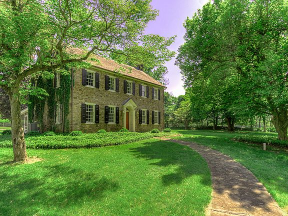 Stunning Example of Bucks County Stone Farmhouse. Sitting nicely back from the road and tucked in the midst of Eight wonderful acres of flowering trees including dogwoods, Cherry, Apple and breathtaking Magnolia's. This lovely home has just undergone an extraordinary renovation that include an attractive kitchen with state of art appliances, marble counter tops and stunning custom white cabinets. The large inviting living room features a handsome stone fireplace, gorgeous wood floors, custom mill work, six over nine double hung windows that allow plenty of light. Formal dining room with raised paneled wainscoating, wood floors, custom built-ins and attractive chandelier. On the second floor you will find three generous sized bedrooms, with the master having it's private master bath. The hall bath has been totally remodeled. There is another charming bedroom on the third floor along with a play area or office. The basement offers much potential and includes a stone fireplace and walk out staircase. To the rear of the home is an inviting screened in porch with flagstone flooring. Paths lead to the fully fenced in ground pool and the detached two car stone garage. To the rear of the property you'll find a 40' x 60' frame pole barn that will accommodate all your collectibles, horses, cars or toys. This is truly a magical property featuring a classic Bucks County Stone Farmhouse with 8 glorious acres of specimen plantings, flowers and ground cover and on the inside you will be surprised to find a stylish, sophisticated living area that is made for entertaining and enjoying the very best in Bucks County Living. 70 scenic minutes to Manhattan, One Hour to center city Philadelphia