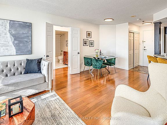Welcome home to this south facing 2 bed + solarium at Kingsbridge Grand Condos. Approx 900sf of open concept space. An oversized true gourmet chef's kitchen w granite, stainless steel, upgraded cabinetry & ample counter space. Primary retreat w plush carpet & ensuite bath. 2nd bed f large closet. Enclosed solarium w sliding doors is perfect for home office or as a 3rd bedroom. Ensuite laundry, locker & parking inc.