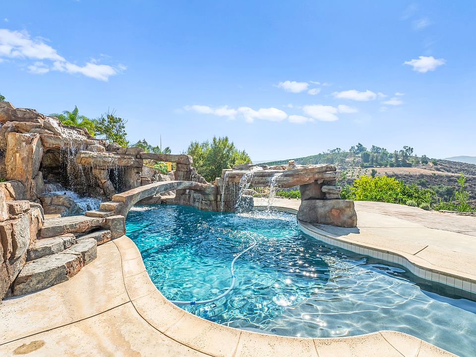 Sparkling poolFruit treesPrivate poolCascading waterfall featureFull kitchenModern furnishingsValley view