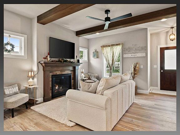 WANT A BRAND NEW HOME at an affordable price? Then you?re in luck! This charming ranch home is full of style and has everything you need to keep life simple. Come inside to enjoy the beautiful wood floors, fireplace, and stunning ceiling beams. The open floor plan makes it easy to entertain or have a more intimate conversation in the built-in dining table and booth. Another favorite spot is the covered screen porch facing the back yard. The primary bedroom includes an ensuite bathroom and walk in closet, complete with custom shelving to keep things organized. The basement is unfinished but includes an egress window for future expansion if desired. Call today and we will be glad to show you this elegant home!