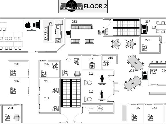 1300 sq ft, including 2 private offices, huge conference room and break-room, marketing studio available upon request, and abundant private parking! 24/7 security and monitoring, handicap accessible, full zoom room functionality AND it is all FULLY furnished