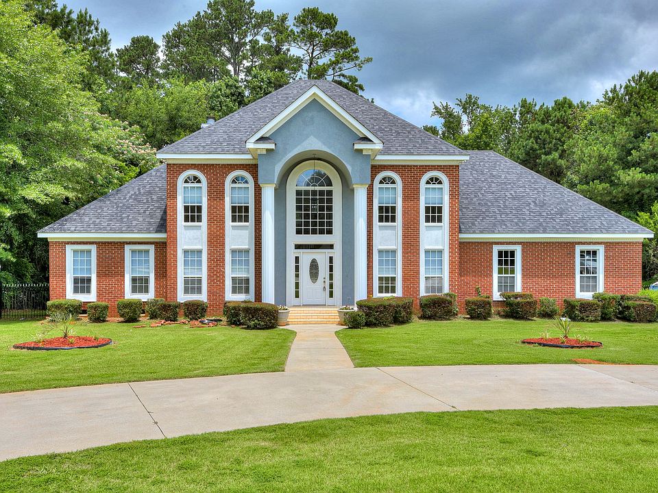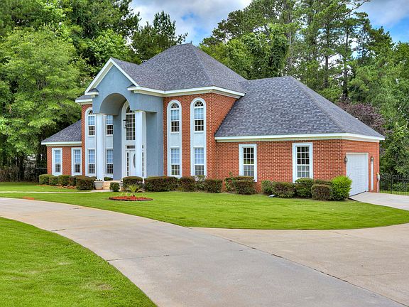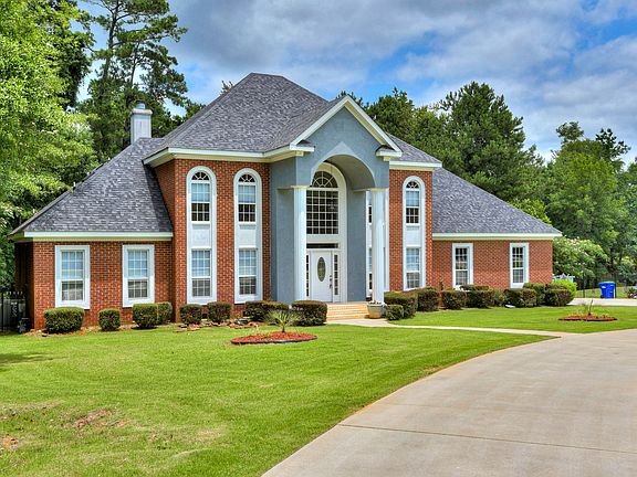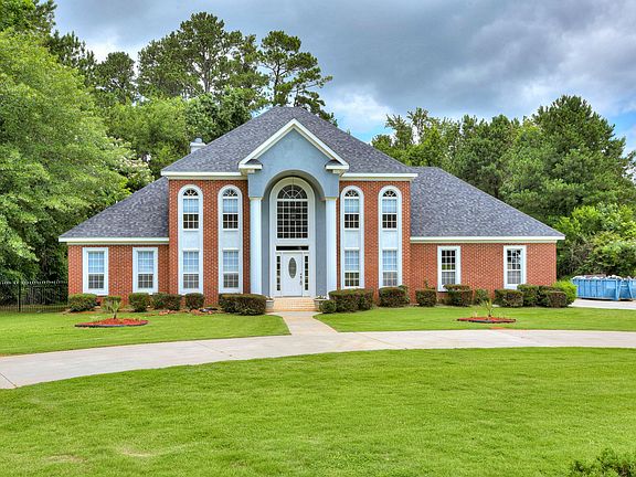 Fall in love with this stunning home in the heart of Evans! Just beyond the iron fence & gated driveway sits this gorgeous home on 1.5 acres. Front entry opens for foyer w/ vaulted ceilings and curved staircase. Formal dining room is to the right w/ ornate chandelier. Living room is to the left w/ ample natural lighting. Straight ahead you will find the spacious great room w/ built in shelving, wet bar, & fireplace. The large kitchen features updated appliances, ample cabinet storage, & breakfast room w/ wrap around windows giving this space an open & airy feeling. Sunroom/family room is to the right w/ additional space to relax or entertain. Owner's suite is on the main floor w/ en suite bathroom featuring dual sink vanity, garden tub, shower, & walk in closet. Upstairs you will find 2 bedrooms w/ private baths, & 2 additional bedrooms with Jack & Jill bathroom. Stairs lead to third level which could be used as a bonus room! Backyard is private & features two tiered patio!