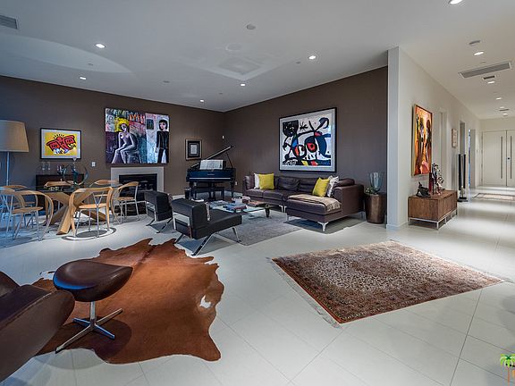 Southern and Western views of the mountains and golf course pop at your eye from this "Zen" model located on a premier lot at Escena in Palm Springs. The floor plan of the Zen model is one of the more popular as the grand living area with walls of Fleetwood sliders makes the backdrop scenery of the mountains and greenery of the golf course as the living canvas. European style kitchen with Italian cabinetry and top of the line appliances and large island for more casual dining. The master suite situated away from the other bedrooms has a spa like bathroom with large shower, soaking tub and walk in closet. Two other bedrooms and baths for guests and additional space that for an office, workout room or cozy den. Pool and spa with remote controls for easy operation and direct access two car garage. Green features such as an owned solar system, drought tolerant plants and tankless on demand hot water are just a few of the energy efficient systems of this property.