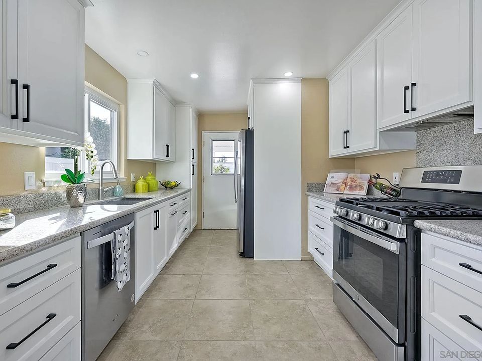 Impeccable and Move-In Ready Gem in the Heart of San Diego! This residence offers an abundance of natural light within its spacious open floorplan. The kitchen is a masterpiece, recently renovated with designer soft-close cabinets, granite countertops, and stainless steel appliances. Enjoy the brand-new concrete driveway, walkway, and patio in the backyard for easy maintenance. Travertine look tile flooring spans the entire home, complemented by fresh interior and exterior paint. The two-car garage includes a bonus refrigerator and washer/dryer. Entertain effortlessly under the large patio shade cover. This location is a dream, with Clairemont Shopping Square within walking distance and convenient access to freeways, La Jolla beaches, UCSD, downtown, and the airport. Don’t miss out – make your best offer today!