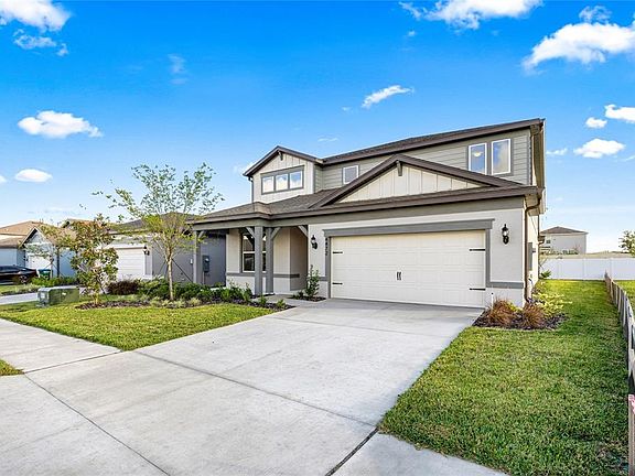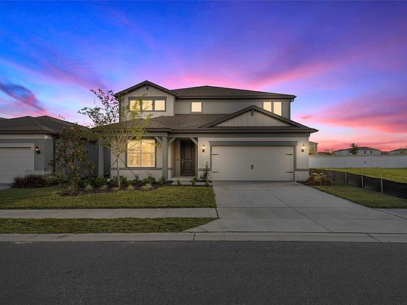 Welcome to Marion Ranch, a beautiful new community in Ocala, Fl. This stunning Yellowstone model offers over 3,400 square feet of thoughtfully designed living space, featuring 5 bedrooms, a spacious bonus/flex room, 4.5 bathrooms, and a 3-car garage-perfect for large families or those whole love to entertain. Step inside to discover a bright and open floor plan that blends function and elegance. The gourmet kitchen is a true centerpiece, boasting a large island ideal for cooking or gathering, quartz countertops, stainless steel appliances, a tile backsplash, and a large walk-in pantry. The expansive gathering room flows into to the covered lanai through upgraded fully retractable sliding doors, creating the ultimate indoor/outdoor living experience. On the main floor, you’ll also find a powder room and a private guest suite complete with its own en-suite bathroom and walk-in closet—perfect for visitors or multigenerational living. Upstairs, three additional bedrooms await—one with its own private bath—along with a versatile flex space, convenient upstairs laundry, and the luxurious primary suite. The primary bathroom features a dual-sink vanity with ample storage, elegant quartz counters, and an upgraded walk-in shower with dual shower heads for a spa-like experience. This home truly has it all. Residents will enjoy resort-style amenities including a clubhouse, resort pool, fitness center, playground, and more. Plus, you're just minutes away from shopping, dining, and entertainment, making everyday living incredibly convenient. Don’t miss your chance to own this exceptional home!