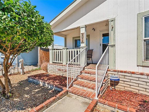 Be settled in this beautiful home before the holidays and enjoy a cup of coffee on the porch. Home is located in the peaceful community of Fairview Park Mobile Home Estates 55+. It offers an open space with natural lighting, Spacious living room with carpet, window blinds and ceiling fan. The ample size kitchen boasts laminate floors, stainless steel appliances, corian counters, a breakfast bar and tons of cupboard space. The 2 bedrooms + den have carpet, window blinds and ceiling fans. Master has a walk in closet and bathroom has separate tub and shower. Indoor laundry, functioning workshop with a/c, electricity and shelving for tools. Home is nicely manicured with some fruit trees and planters. The carport area can possibly fit 3 cars.