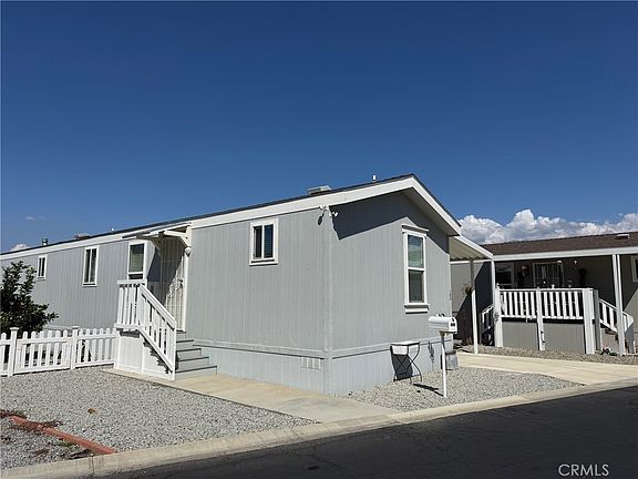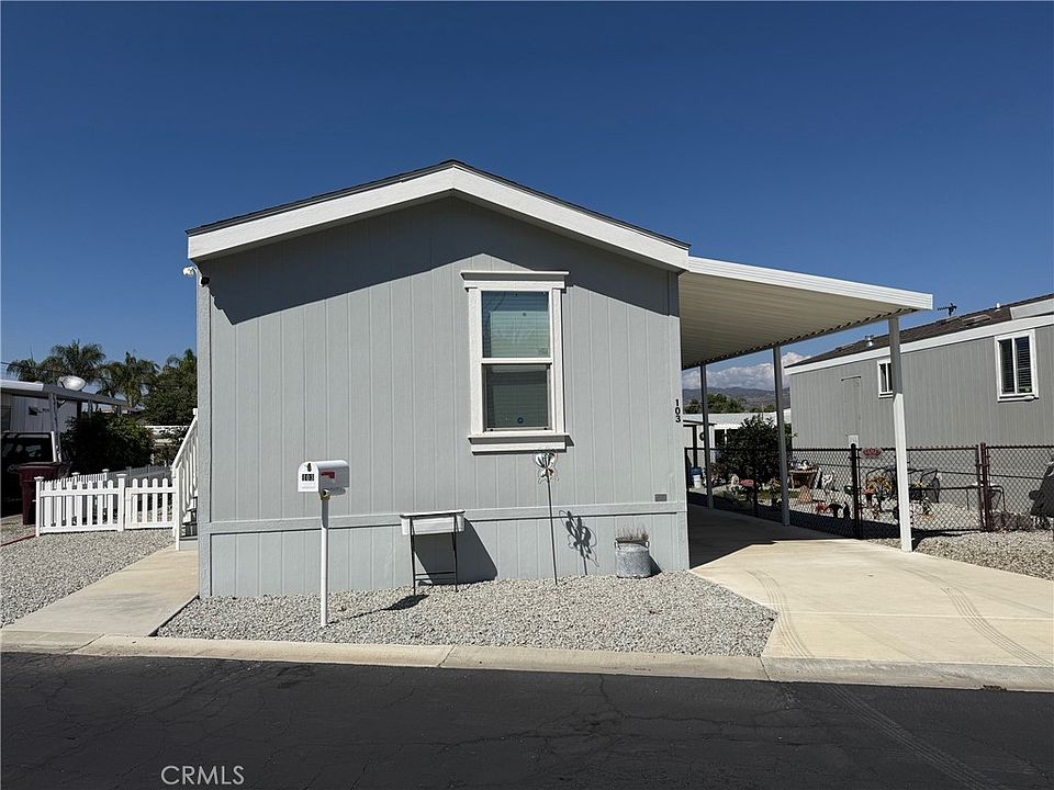 Welcome to Fairview Park Estates, a 55+ community in East Hemet! This beautiful 2020-built home offers 2 bedrooms and 2 bathrooms across 868 sq. ft. of comfortable living space. The open floor plan features a spacious living area that flows seamlessly into the kitchen and dining area, perfect for entertaining or everyday living. The kitchen boasts modern cabinetry, ample counter space, and granite-style finishes. Each bedroom is located on opposite ends of the home for added privacy, with the primary suite offering a large closet and private bath. Enjoy peaceful mountain views from your covered carport or from the rock scaped yard, complete with a small fenced area and storage shed. The home also features an accessibility ramp and a quiet location within the park. Fairview Park Estates is a 55+ community offering a clubhouse with pool and spa, library, laundry and recreation area. Low space rent of approximately $630 per month includes access to all park amenities. Move-in ready and meticulously cared for — this home combines modern comfort with affordable senior living in the heart of Hemet. MORE PHOTOS COMING SOON!