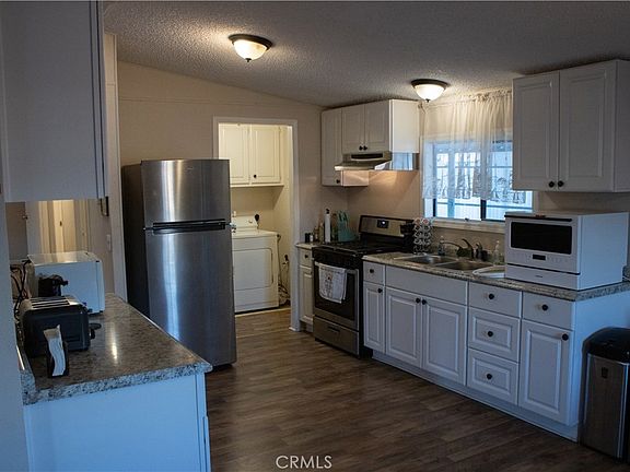 Discover this beautifully remodeled 1988 mobile home located in a quiet, well-maintained 55+ park with rent control. Enjoy a spacious, dog-friendly yard (up to 2 dogs allowed), which is fully fenced with privacy slats for your comfort. Relax on the covered porch and deck and take advantage of the covered carport for convenient parking. Inside, you'll find new laminate flooring throughout the living area, window coverings for privacy, and modern amenities including a countertop dishwasher, washer & dryer, and refrigerator—all included. The property also features two sheds with electricity, offering plenty of storage and workspace. The home was completely remodeled eight years ago and boasts a low-maintenance yard, making upkeep a breeze.