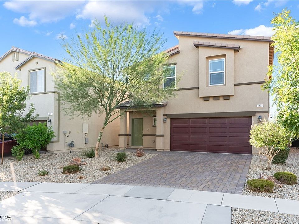Welcome to your dream home in the highly sought-after Valley Vista gated master-planned community. This beautifully maintained 2 story home offers comfort, style and functionality. The gourmet kitchen is equipped with sleek granite countertops, stainless steel appliances & generous cabinetry. The home boasts 3 bedrooms & 2.5 bathrooms with a versatile loft area with ample space. The large primary bedroom features surround sound speakers with an en-suite bathroom with double sinks. Step outside into your backyard oasis, complete with a patio cover & a sparkling pebble tec pool & a splash pad for cooling off during the warm days or hosting unforgettable get togethers. The 2 car garage includes a Tesla charger. You'll enjoy access to scenic parks, walking trails, tennis courts, volleyball, pickle ball, basketball, dog parks & minutes away from shopping, dining and the Aliante Casino. This is more than just a house-it's a lifestyle. Come see what makes this home & neighborhood so special!