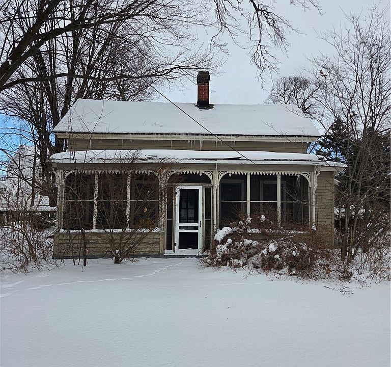 This 2 story home is located on a corner lot and offers a flexible layout with a main-floor bedroom and full bath, plus additional living space upstairs. The living room and eat-in kitchen provide a practical floor plan with plenty of potential for updates and personalization. The upper level features an additional bedroom with sloped ceilings and dormer windows, adding character. Interior finishes reflect the home’s age, making it a great opportunity for buyers looking to create their own space or add value over time. Outside, a convenient cellar door leading to the property basement. a detached two-car garage, offering ample parking and storage. along with an additional shed located in the yard. A rear deck and enclosed porch provide additional usable space.