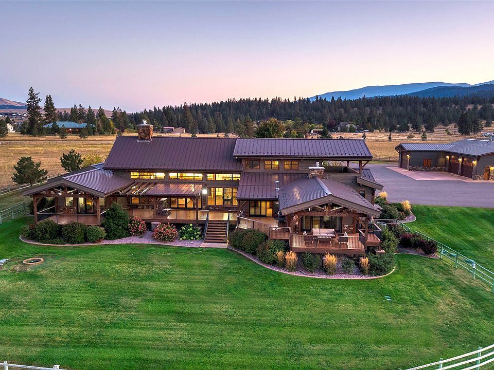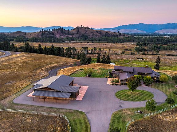 Located within the Blue Mountain neighborhood of Missoula, this exceptional property presents a rare opportunity to own a piece of luxury amidst a private, natural setting, while still being close to town. Spanning over 91 acres of pristine land, with 1,200 Ft. +/- of coveted private Bitterroot River frontage, this estate epitomizes high-end living in the heart of Big Sky Country. At the forefront of this property stands not only an executive 10,408 sq. ft. home, but also a detached 4,324 sq. ft. shop, with high ceilings and 4 oversized overhead doors. These structures, meticulously designed and crafted, provide both practical functionality and additional living space for family or guests. As you enter the main residence, you will immediately notice the intricate wood detailing throughout, including circle sawn hardwood floors, massive exposed timber frame trusses and beams, and wood-planked ceilings, creating a rustic yet elegant atmosphere. The open-concept design seamlessly connects the living room, dining area, and chef’s kitchen, offering an ideal setting for both intimate gatherings and grand entertaining. The living room features a soaring floor-to-ceiling stone fireplace, cathedral ceilings, and expansive windows framing gorgeous mountain views. The chef’s kitchen is a culinary masterpiece, featuring high-end appliances, dual islands, granite counters with a matching backsplash, and a large pantry, ensuring a perfect blend of style and functionality. The main floor primary suite offers both comfort and luxury with a floor-to-ceiling stone fireplace, private deck access, and a spa-inspired ensuite bathroom with a custom-tiled walk-in shower, soaking tub, dual sinks, and a spacious walk-in closet. Upstairs, a loft overlooks the living room, offering a versatile space for entertainment or relaxation. The partially finished basement provides endless possibilities for customization to suit your lifestyle and preferences. Outside, the property features a spacious covered deck, providing a secluded area to unwind away from the view of Blue Mountain Road. The deck includes an exterior fireplace and offers panoramic views of the surrounding mountains and Missoula Valley, providing a beautiful backdrop for outdoor gatherings. Bordering the Lolo National Forest and right next to the popular Blue Mountain recreation area, this property offers unparalleled access to outdoor adventures, including hiking, fishing, wildlife watching, and more. With downtown Missoula just a short 20-minute drive away, enjoy the perfect balance of seclusion and convenience at this truly one-of-a-kind luxury estate in Missoula’s Blue Mountain neighborhood.