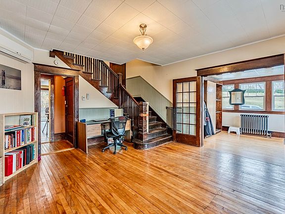 Step into the timeless charm of 4474 Highway 1, a 1920's home nestled in the heart of the quaint village of Weymouth. This delightful single-family residence sits on a generous 0.37-acre lot, offering ample space for both privacy and outdoor activities, making it an ideal home for families. The property exudes classic elegance with its beautiful woodwork, original hardwood floors and stained-glass windows that carry a story of the past. With three bedrooms, this home is perfectly configured for family living. Additionally, an attached one-bedroom in-law suite adds to the versatility of this residence, ensuring comfort for extended family or guests. The fenced yard ensures a secure play area for children and pets alike, while the back patio provides a private place for alfresco dining and relaxation. Inside, the home is warmed by ductless heat pumps and traditional hot water radiators. Amenities are not forgotten, with a drilled well and municipal sewer providing essential services. The full basement with walkout offers ample storage space. A double garage provides shelter for the family vehicles. Living here means you're within walking distance to the local amenities of Weymouth, bringing convenience to your doorstep. 4474 Highway 1 is more than just a house; it's a warm, inviting home brimming with character, ready to welcome a new family to create their own memories within its walls.