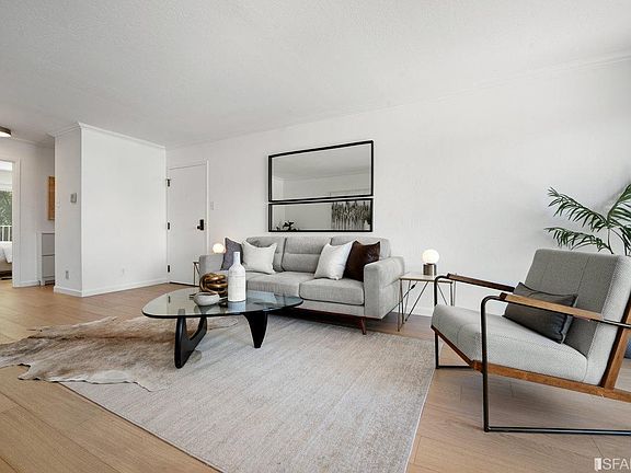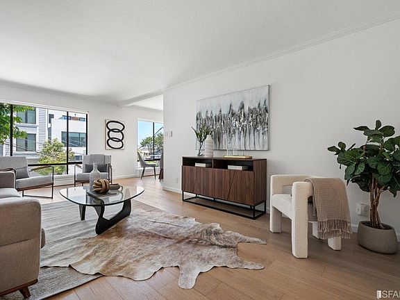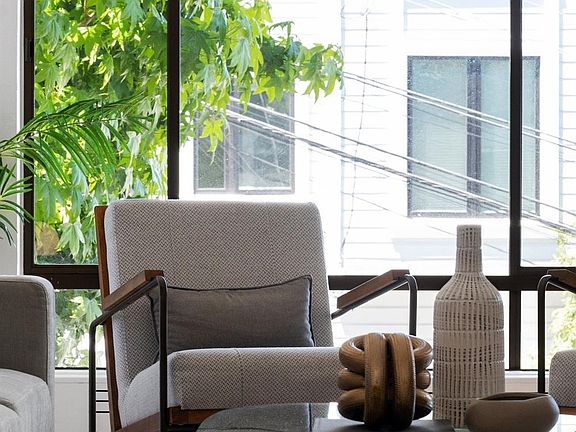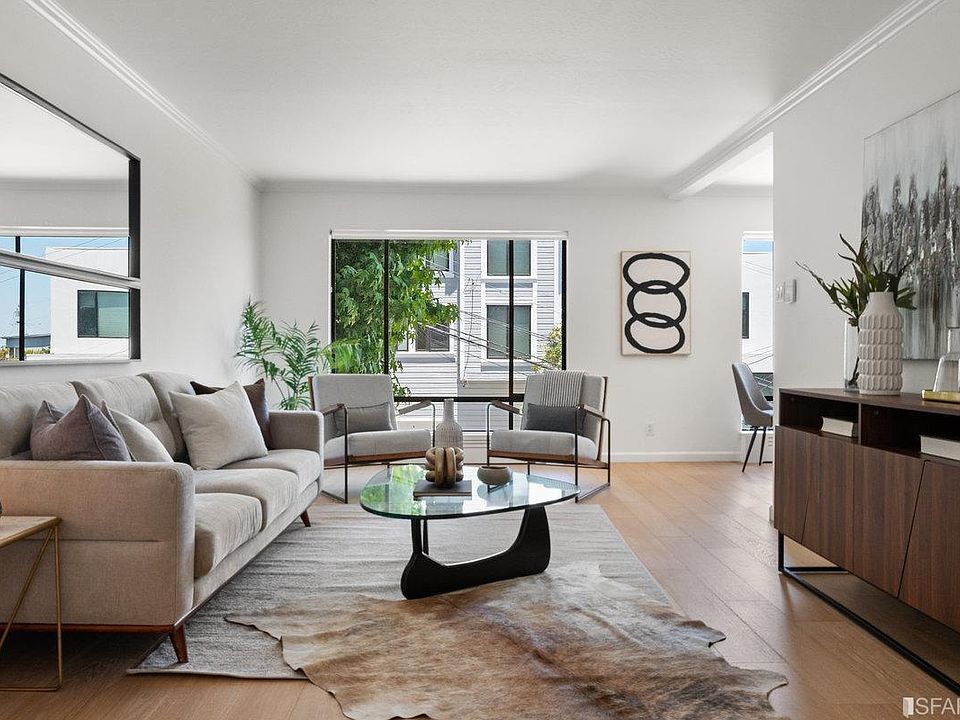 Contemporary Noe Valley 2-bedroom residence in a boutique 4 unit building in San Francisco. This unit features an open living room with wide plank hardwood floors and partial views of the bay and downtown skyline. The contemporary kitchen has modern countertops and stainless-steel LG appliances including an induction range. The primary bedroom includes a walk-in closet with a custom organization system, and both bedrooms have access to a rear patio with lush green outlooks. The designer bathroom offers a full-size shower and natural stonework. The unit includes automated heating controls, dual pane windows for bedrooms, shared garage with independent parking and additional storage, as well as shared laundry facilities. Conveniently located near Whole Foods, restaurants, shops, and parks. Don't miss this opportunity to own a wonderful home in a sought-after neighborhood.