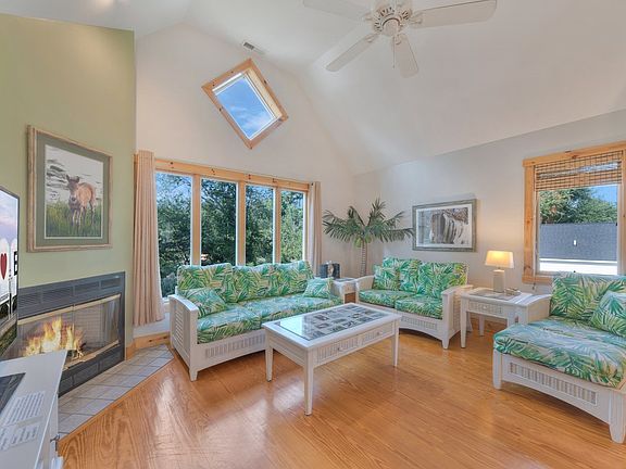 Welcome to Captain's Loft- A majestic 2 Bdrm + Den/3.5 Bath Duplex that stands head & shoulders above the rest. W/a Reverse Floor Plan, this home has an airiness about it that will take your breath away. On 1st Floor are 2 Bdrms w/Attached Baths + Den, & all filled w/abundant natural light. Upstairs, you'll find Pine Floors, Vaulted Ceilings, Gas Fireplace, & Warm Wood Accents. W/Windows galore, the Views are truly magical. Step outside & onto your Screened Porch & you have incredible Views up & down Deep Hole Rd., the perfect place to begin & end each day. In a great mid-island location, you're walking distance to Nature Trails & the Dog Park, & perfect for biking & walking. Successful Vacation Rental, loved by its Owners & Guests alike. Most furnishings /Art Convey!