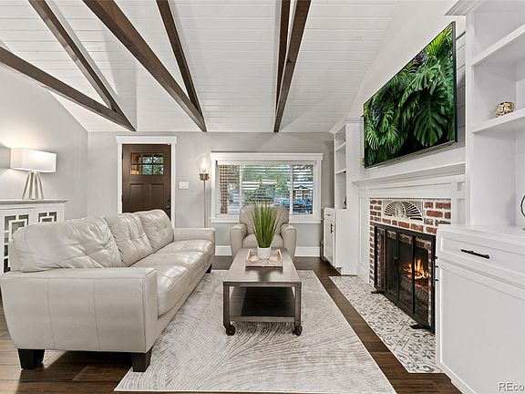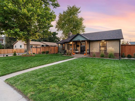 Step into the good life! This fully updated Broadway Heights ranch is a true gem in one of the hottest up-and-coming neighborhoods in town! The interior is both cozy and modern, featuring wide-planked hardwood floors, upgraded baseboards, wood-beamed vaulted ceilings, built-in storage bench, newer windows, updated electrical, outdoor soffit & landscape lighting and so much more! The kitchen is a chef’s dream, boasting blue and white Shaker cabinetry, newer black stainless steel appliances, quartz countertops, soft-close cabinets & drawers, gas range, drink cooler, recessed lighting, stylish cabinet pulls, and a chic subway tile backsplash. The sliding barn door leads to a full walk-in pantry with stackable washer and dryer included. Both bedrooms are spacious and bright, boasting frosted glass doors and lighted ceiling fans. Your updated bathroom provides new tile flooring, custom lighting, updated vanity with tons of storage, and a luxurious spa-like shower w/bench. HUGE Lot allows for expansion & is zoned R-2-B allowing for ADU! This property is fully landscaped and features a large detached insulated garage that is heated, equipped with running water, EV Charging, and offers easy rear-entry access. With gates on both ends of the pass-through RV/boat parking to a Paved Alley, this property provides recreational convenience at its finest. The backyard is a dream oasis featuring a fully plumbed outdoor kitchen, pergola, mounted outdoor TV, Trex deck, Strong Spa hot tub (made for CO climate), hanging swing, decorative lighting, and a private firepit area. Updates include all-new electrical, plumbing, windows, drywall, and fixtures completed in 2018, along with a custom kitchen and remodeled bathroom. Recent upgrades in 2023 and 2024 include new baseboards, doors, fencing, gutters, and exterior paint. This move-in-ready home is centrally located just 12 minutes to downtown Denver; 10 minutes to the Denver Tech Center. Don't let it get away. This is THE ONE!!!