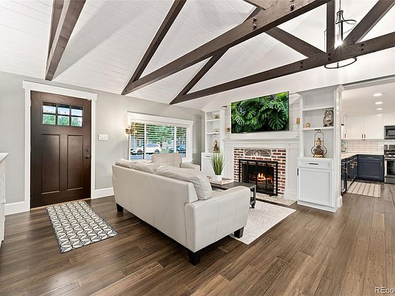 - Description: Open Concept, Tongue & Groove Vaulted Ceiling Wood Beams, Built-Ins, Wood-Burning Fireplace, Hardwood Floors