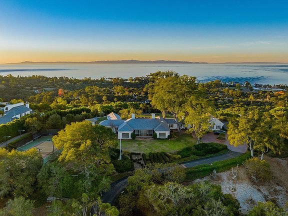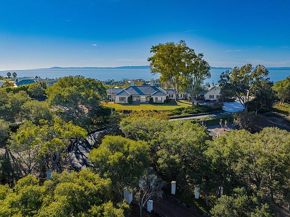 Truly exceptional one-of-a-kind property! Panoramic ocean, island, coastline & mountain views from expansive, level homesite. Two parcels in prime Hope Ranch location on private and usable 5.5 acres. Single-level home opening North and South to breathtaking views.
