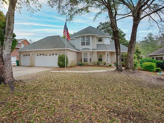 SELLER WILL CONTRIBUTE UP TO $5500 IN SELLER CONCESSIONS!!! Roof 2017, Dual zone HVAC with smart thermostat 2017, gas WH 2022, hard-wired WHOLE HOUSE GENERATOR.. Don't miss your opportunity to own this beautifully remodeled (2019) mostly brick, 3-car garage home. There is wood-like tile throughout the downstairs, recessed lighting, fans in all the rooms. There is a HUGE formal dining room AND eat-in kitchen. The chef in your life will LOVE the abundance of beautiful granite counter tops, newer soft-close cabinets, two FULL-SIZE wall ovens, a prep sink in the island with garbage disposal, gas stove, an oscillating overhead fan, brick-like backsplash. The view out the kitchen bay window and screened in back porch look out to the woods of the Eglin AFB Reservation. You get beautiful views of native plants, flowers, and wildlife. The spacious screened-in porch has tile flooring and is a great space to sit and enjoy the serene views bug free and with the breeze of the outdoor fans! Its also a great space for entertaining and grilling out; complete with gas hook up. There is an awesome doggie door through the deck with brand new steps. The master bedroom is on the first floor and features trey ceilings, sliding glass doors to the Florida room (that is like a wall of windows with views of the Reservations, too!) The master bath boasts dual sink vanity with quartz countertops, soaking tub, walk-in shower with tile surround, 2 shower head one that is similar to a rainwater shower, large walk-in closet with custom built-in organizers. Other great features: central vacuum, outdoor stone fire pit, perfect for warming up on chilly nights, all bathrooms have quartz counters and new cabinetry, the 1/2 bath downstairs has a beautiful barn door. There is an abundance of storage. The laundry room has granite counters and additional cabinets. Garage has cabinets and utility sink, the shelves in the garage will convey.