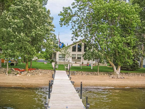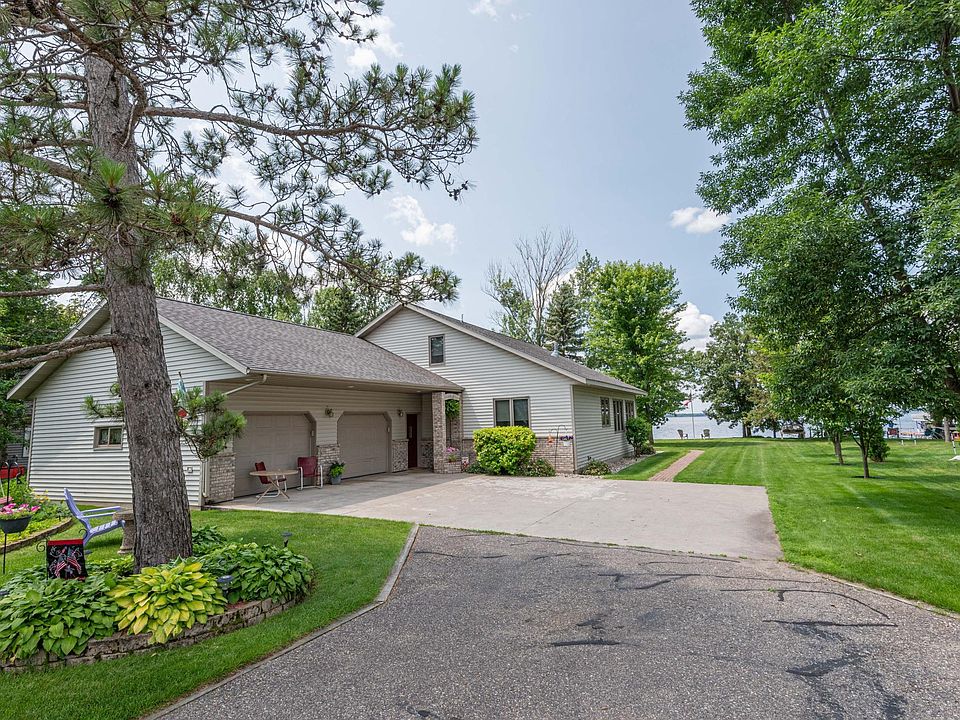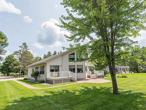 Welcome to the perfect level sand beach you've always dreamed of. This unique property on Big Pine Lake features a pristine 102' sandy shoreline, offering ideal swimming. As you step inside, you'll be captivated by the stunning pine tongue-and-groove vaulted great room, complete with a cozy gas fireplace and expansive lakeside windows that provide breathtaking views from every room in the house. This meticulously maintained, one-owner home boasts a spacious primary suite with jetted tub & a walk-in closet. The inviting sunroom opens to a lakeside patio, overlooking a lush, level lawn, mature trees and impressive landscaping that leads to an unparalleled sandy beach. The loft offers a second bedroom, a 3/4 bath, and an open lofted area perfect for relaxation or extra guests. The property also includes an outbuilding that serves as a storage shed/workshop and a bunkhouse equipped with a bathroom ready for hookup. Don't miss out on this rare opportunity; level lots like this one on this beach are highly sought after and go quickly!