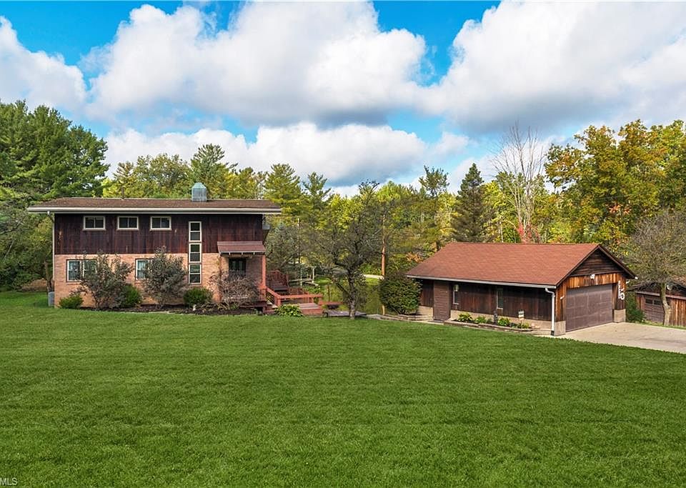 This unique contemporary colonial is located in prime Peninsula, and nestled on almost 2 acres of wooded land. Built in 1965, this extraordinary custom built oasis is home of 1 bed and 2 baths. Enter through the sun drenched foyer and admire the original free standing brick fireplace with beautiful custom tiling. The open floor plan on the first floor is ideal for seamless entertainment. The eat-in kitchen features stainless steel appliances, double skylights, and access to side deck with scenic views. The cozy first floor master bedroom continues with blonde thin hardwood floors and has an en suite bathroom with sliding farm doors and soaking tub. Notice the double exposed brick throughout the house which keeps the home cooler in summers. Spiral staircase from the foyer takes you to the sizable lofted living room. The full finished walk out basement leaves opportunity for additional living or entertainment space. The true gem of this home is the outdoor space. Enjoy year round breathtaking views, tranquil waterfall, and your very own stocked pond from the large wraparound deck. This home is truly one of a kind! Schedule your private showing today.