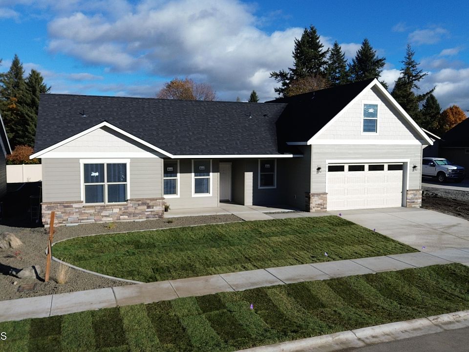 This stunning new home is nearly finished in a sought-after community close to I-90, Highlands, and local amenities. The thoughtfully designed main level offers open-concept living with a spacious kitchen, dining, and living area, plus two bedrooms, a full bath, and a master suite featuring dual closets and a private bath. Enjoy quality finishes like granite countertops and a cozy gas fireplace. Upstairs, you'll find a versatile bonus room, a fourth bedroom, and another full bath with its own thermostat—ideal for guests or extra living space. Outside, take advantage of the generous 30' x 36' shop and a large yard perfect for entertaining or relaxing.
