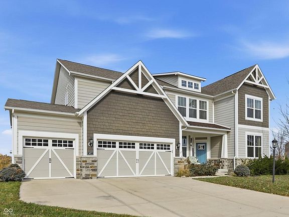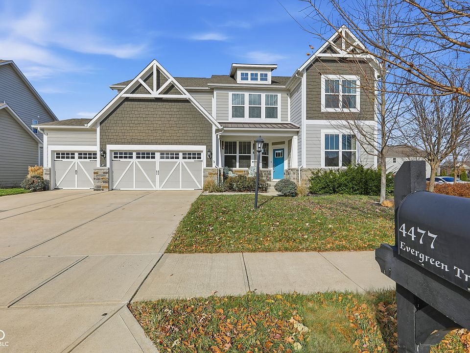 Nestled at 4477 Evergreen TRL, CARMEL, IN, this single-family residence in Hamilton County presents an attractive property, ready to welcome you. Built in 2017, this two-story home offers a blend of modern design and comfortable living. The living room is a bright and airy space, enhanced by a high ceiling that creates an atmosphere of openness. Imagine relaxing in this expansive area, perfect for both quiet evenings and entertaining. The kitchen is a culinary dream, featuring a backsplash that adds a touch of elegance, a kitchen bar for casual dining, and a large kitchen island providing ample workspace. Shaker cabinets and stone countertops complete this stylish and functional space. The bathroom offers a double vanity and walk in shower, providing a spa-like experience in the comfort of your own home. The bedroom provides the convenience of an ensuite bathroom. This property includes four bedrooms and two full bathrooms, along with one half bathroom, providing ample space for everyone. Enjoy outdoor living on the porch, patio, or deck, ideal for enjoying the residential area. The walk-in closet offers generous storage space, helping to keep your home organized and clutter-free. With 3291 square feet of living area on a 12632 square foot lot, this home offers plenty of room to live and grow. Experience the perfect blend of style and comfort in this inviting Carmel residence, poised to become your personal sanctuary.