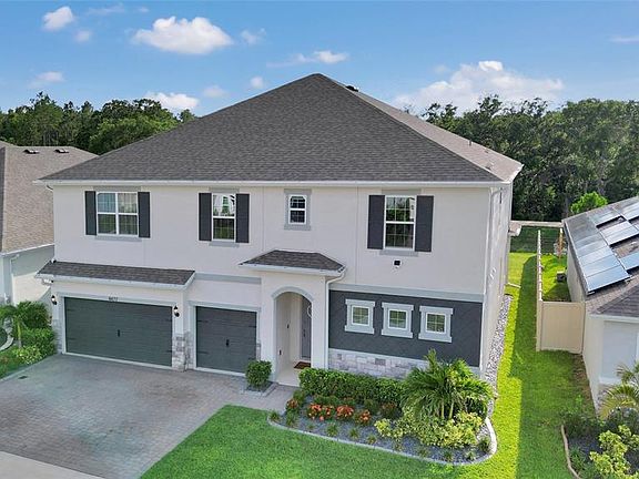 Welcome to your Luxury Dream Home in Beautiful Clermont, Fl. Nestled in the sought-after community of Hartwood Landing, this stunning home combines modern elegance with everyday comfort. Boasting 6 bedrooms, 4.5 bathrooms, huge loft, and a flex room in a very spacious 4,291 square feet of living space, this property is perfect for families or those who love to entertain. You will absolutely love the kitchen area with the very expansive island. Its enormous must see in person to appreciate. As you step inside, you're greeted by an open-concept floor plan filled with natural light, high ceilings, and premium finishes. The chef-inspired kitchen features quartz countertops, stainless steel appliances, and ample storage, making it a dream for any culinary enthusiast. The expansive living and dining areas flow seamlessly, providing a welcoming space to host gatherings or relax with loved ones. The primary suite offers a tranquil retreat with a luxurious ensuite bath and a walk-in closet. This primary bedroom is on the first floor. Additional bedrooms are generously sized and ideal for guests, a home office, or a playroom. Step outside to your private backyard oasis, complete with outdoor features like a super-sized lanai, backed up to a conservation area, get your exercise on with a very nice walking trail. Two dog parks are within the community. Many social activities as well. It's the perfect spot to enjoy Florida's year-round sunshine. Located just minutes from top-rated schools, shopping, dining, and major highways, also the sensational Olympus Project. This is one of the fastest growing areas in the entire state of Florida. This home offers the perfect balance of convenience and serenity. Don't miss the opportunity to make this incredible property yours! Schedule your private showing today and experience the lifestyle you've been dreaming of.