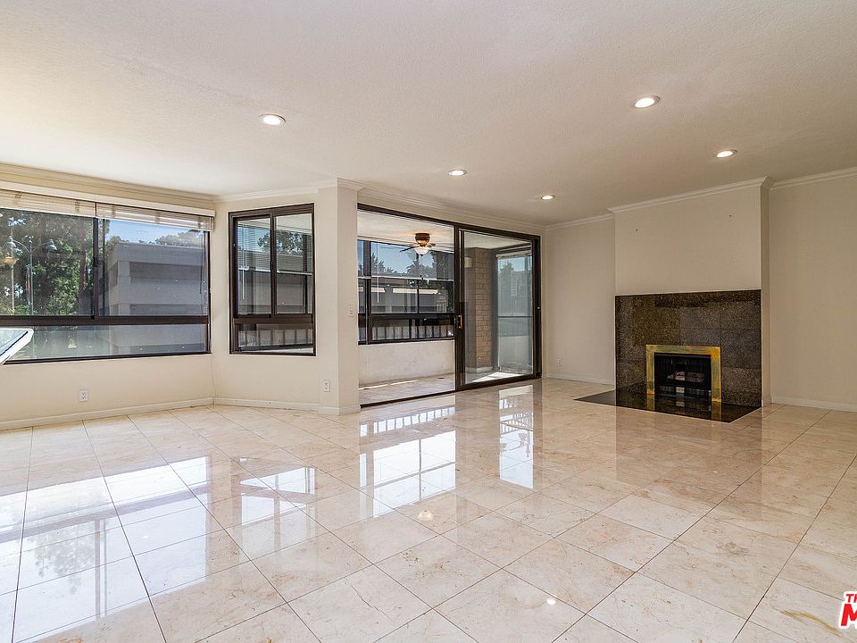 Luxury condominium located in Hancock Park-Wilshire.This corner unit has a spacious living room with a huge enclosed balcony to the South facing, marble flooring, and cozy fireplace. Hardwood floor throughout in all rooms, granite countertops, and custom-made cabinetry kitchen which open to the living room, recessed light, crown molding. Only one small wall in the master bathroom share with neighbors. Two balconies can access to the swimming pool & courtyard directly.2side-by-side parking spaces, on-site community swimming pool, jacuzzi, outdoor cooking area, sauna, and exercise room. 3rd Street elementary school district. Large private storage unit in the garage area, not all residents have this option.