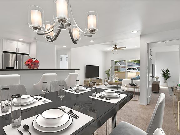 Completely remodeled 2 bedroom, 2 bath, ground floor condo in Temecula Creek Village – one of the finest locations in South Temecula. Approximately $50,000 spent transforming this beautiful condo. New kitchen, bathroom cabinets with quartz counters, luxury vinyl plank flooring, living room ceiling fan, paint and lighting! Immaculate and ready to move into. This desirable ground floor, corner unit is in a private back corner of the community, uniquely nestled next to a grassy green belt with beautiful, large trees and an entrance to a walking path with open space beyond. Side by side washer, dryer and refrigerator is included. Home has an open floor plan with entry, dining area, kitchen with bar seating and living room that opens to a large covered patio. Kitchen features all new, high end, soft close white cabinets and a lower corner lazy Susan; stainless steel appliances include a 5-burner range, built in microwave, dishwasher and counter depth refrigerator with in-door water and ice; 36” stainless farm sink with two bowls and tall pot height faucet; modern looking solid surface counter tops; and luxury vinyl plank flooring. Both bathrooms have modern, grey cabinets, quartz countertops, faucets, lighting, mirrors and vinyl plank flooring. The master bath is thoughtfully upgraded to include two sinks. A floating back lit mirror adds great style to the guest bathroom. Both bedrooms have doors that lead to the large patio with nice views of the greenbelt, trees and skies. Washer and dryer are full sized, side by side in a large closet with shelf off the entry. 3’ x 7’ private storage room is conveniently located across from the front door. Community amenities include a pool with BBQ area and spa; fitness center with locker room, showers and sauna; racquetball ball court, club house with kitchen, meeting room and outdoor fireplace. Reserved covered parking space #182 is conveniently located a few spaces from the condo and a parking permit is available for a second vehicle. Located close to shopping, restaurants, beautiful wineries, Pechanga Resort and Casino, Old Town Temecula and easy access to the 15 freeway. Photographs are virtually staged. See this beautiful condo before it is sold! You will love it.