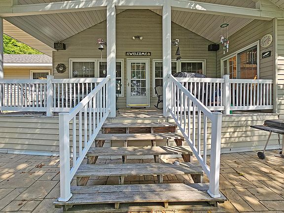 Discover the ultimate lakeside haven on 1.9 acres of pristine paradise, showcasing a remarkable 785 feet of shoreline with a flawless sandy beach. This exceptional 4-bedroom, 3-bath home offers the ease of single-level living, featuring a sun-drenched vaulted sunroom and a cozy fieldstone fireplace, perfect for cool evenings. The property's distinction shines with a level lot featuring a private lighthouse peninsula that adds character to your waterfront sanctuary. Beyond the main house, explore a party room above the two garages, ideal for gatherings, complete with kitchenette and 3/4 bath. There's also a functional boat house and an enticing lakeside boathouse with boundless potential, as a workshop, man cave, or she shed. Stony Lake's crystal-clear waters beckon you to swim, boat, and fish. This rare gem seamlessly combines natural beauty, modern comforts, and limitless possibilities for your up-north living dreams. Don't wait; seize this extraordinary beachfront opportunity now!