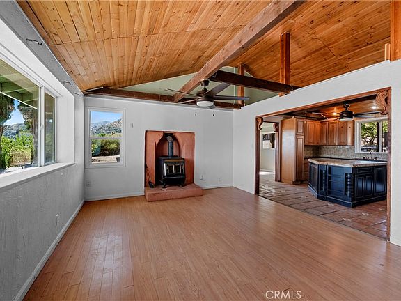 Discover a single-story ranch-style home, perfectly situated in a secluded desert mountain retreat where unparalleled mountain views meet refined comfort, spread across an expansive 5.32-acre lot offering boundless of opportunities to enhance and add value, notably secured by an exceptional fence surrounding the property for both ease and privacy. Immerse yourself as you are welcomed by an abundant of natural light flooding through expansive windows, mesmerizing mountain views that will leave you in awe, and soaring 16-foot cathedral ceilings that add a sense of grandeur complimented by rich wood beams for both warmth and architectural charm. Step through the unique blend of bamboo and terracotta floors while the open-concept layout, paired with a brand-new ceiling fan, offers a seamless flow of space perfect for entertaining or unwinding in absolute comfort. A luxurious Onyx Island, takes center stage in the kitchen, wrapped around with plenty of storage, wooden cabinetry, exquisite tile backsplash, and a new ceiling fan in both the kitchen and dining area. In the hallway you’ll find a storage closet while each room harmonizes beautifully with the homes cohesive theme featuring wooden floors, baseboards, and a walk-in tiled shower that invites natural light through the strategically placed window along with a new exhaust fan. The primary bedroom boasting a stunning wall-to-wall mirrored closet enhances the sense of space and light with indoor/outdoor access adjacent with an en suite bathroom that’s equipped with a calacatta marble walk in shower and new exhaust fan. Enjoy outdoor activities such as the mountain high ski resort in Wrightwood mountains, Silverwood Lake, Pacific Crest Trail stretching from Silverwood to Wrightwood, horseback riding, and ziplines at Pacific Crest. With just a 1-year-old roof for peace, this corner lot is an outdoor enthusiasts dreams with panoramic mountain views and endless opportunities to add an ADU, accommodating horses, roosters, and chickens, or simply creating your personal haven. Conveniently located within a short commute to Ontario Mills, Victoria Gardens, and Highway 15, this property offers not just a home, but a lifestyle rich with potential for adventure and relaxation. Imagine creating lasting memories in a space that perfectly combines natural beauty and boundless opportunity.