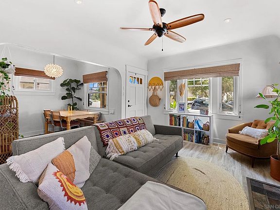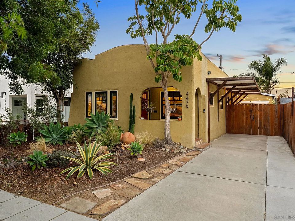 Tucked into one of San Diego’s most walkable and eclectic neighborhoods of Normal Heights, this completely turn-key 1926 Spanish bungalow blends timeless charm with thoughtful updates and an outdoor space that’s nothing short of extraordinary. From the moment you arrive, the classic stucco exterior, original arched details, and welcoming front porch set the tone for a home that’s rich in character. Inside, enjoy a bright and open floorplan filled with warmth—rich wood-like floors, coved ceilings, and vintage-inspired fixtures are paired with modern upgrades for everyday comfort and style. The true magic, however, lies outside. Situated on a rare usable lot with alley access, the backyard has been masterfully transformed into a private sanctuary designed for both relaxation and entertaining. A custom-built al fresco dining area sits beneath twinkling string lights, creating the perfect setting for dinner parties or laid-back weekends. A dedicated gardening nook and greenhouse invite your green thumb to flourish, while the expansive grassy area offers plenty of room for kids and pets to play. This home is more than just a place to live—it’s a lifestyle. Located just steps from Adams Avenue’s buzzing restaurants, cafes, bars, and boutiques, you can leave the car behind and walk to everything. Whether you're exploring local music and art, grabbing coffee with friends, or biking through nearby parks, this location puts you in the center of it all. Charming, updated, and incredibly livable—this Normal Heights gem is ready for its next chapter. All that’s missing is you.