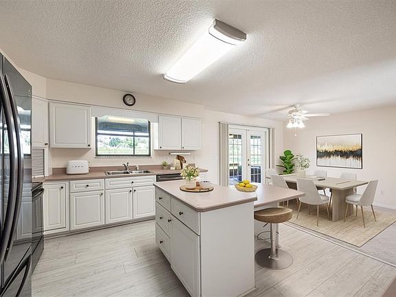 One or more photo(s) has been virtually staged. Welcome to this beautifully maintained 3-bedroom, 2.5-bath brick home situated in the Hidden Hills community in Keystone Heights. This spacious residence offers a thoughtful layout and quality craftsmanship throughout. Step into the welcoming foyer and into the light-filled living room with a cathedral ceiling, perfect for entertaining or relaxing. The open kitchen features a large island, an eat-in dining area, and a great flow for daily living. The primary suite offers a generously sized peaceful retreat, an oversized walk-in closet and a private bathroom complete with a walk-in shower. Guest bedrooms are well-sized and share a full hall bath, which conveniently opens to the large screened back porch. The 12 x 24 tiled and covered porch overlooks a green space, formerly a golf course. A dedicated utility room with a large stainless steel sink and commode can be accessed from the 2-car garage, which also includes a separate golf cart bay. Upgrades and additional features include a 2024 HVAC system, a 2010 metal roof, a detached metal-roofed storage building, security lighting. The home is served by city water and also has well for the irrigation system. The beautifully landscaped yard and peaceful green space backdrop complete the setting. This home combines comfort, functionality, and serene views all ready for you to move in and enjoy. Just minutes from Keystone Heights and Melrose and 24 miles to Gainesville. Buyer to verify all measurements and school zones.