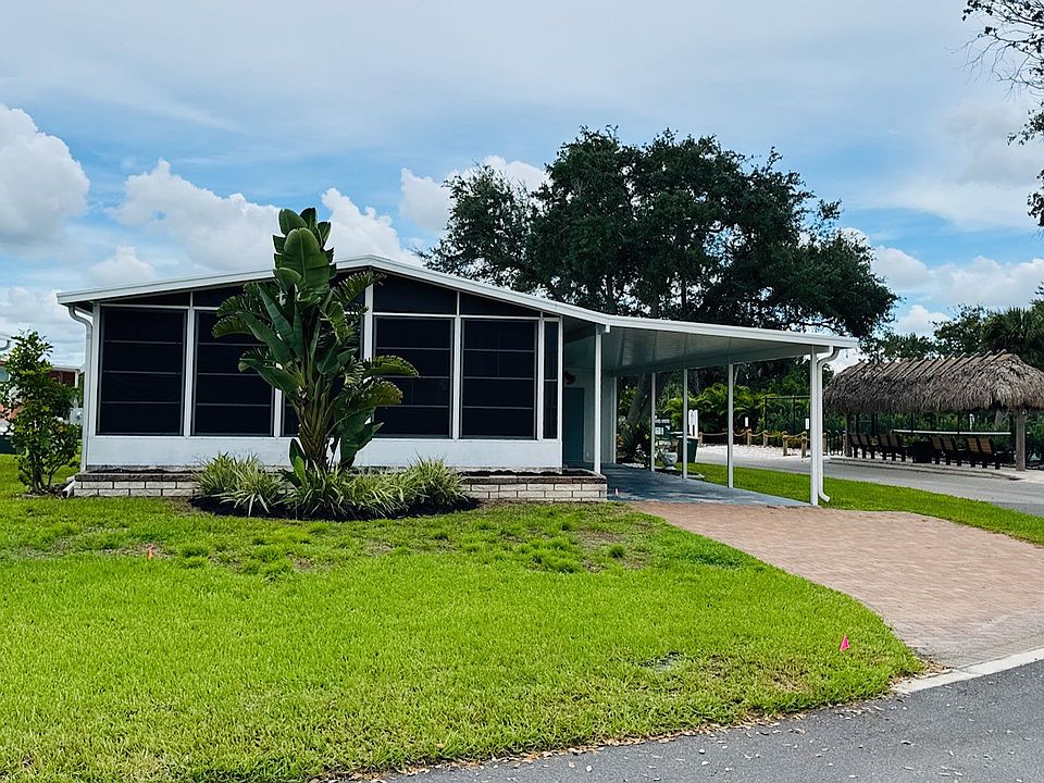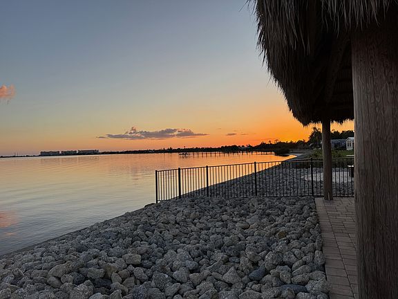 2 bedroom/ 2 bath home with a perfect Sun Set every evening! Just take a look. This home, located in a 55 community, is on a large corner lot, right across the street from the Waterfront, Heated Salt Swimming Pool, Pickleball court, Putt-putt golf, Dog Park, Fire Pit, Corn Hole games and if you look to the right you are just footsteps to the Fishing Pier that has its own cleaning station. and not far from the home are the mailboxes. Just step right in and take a look at the open floor plan. You have a very large living room and dinning room which is open to the kitchen with its new Stainless Steal appliances and plenty of cabinet space. The floors are the waterproof laminate flooring all except for the bathrooms. The carport is new and the home has been freshly painted outside. This is a turn key home. Which means what you see stays. No need to bring anything but your suit case. So, you invite some friends over and sit right back in your large Florida room and take in the views. Or go on over and relax in pool. If you like to stay active there are plenty of planned activities you can do. Stop in to the club house and sign yourself up for any activity that you like. Everyone is waiting for you. Come and see this home now! The monthly fee package for Harbor View on the Bay includes Land lease , Sewer, Estimated Water, Trash, Recycling, Yard Waste Service, 1 Gig Fiber Optic Internet, Gated Entry, Lawn Care, Property Taxes, and Use of the Resort Style Amenities for around $1701.00 per month. Harbor View Ownership group contributes a generous yearly amount to the community's Social Fund in hosting planned activities and community events.