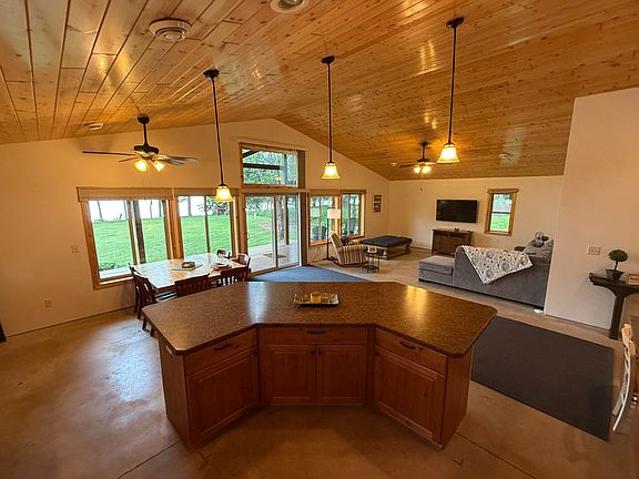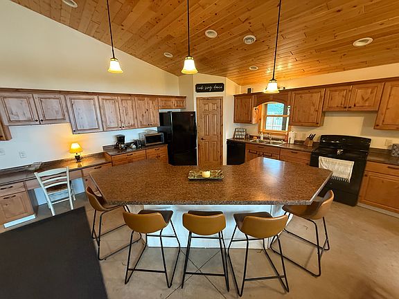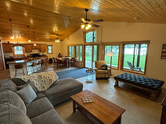 The kitchen is perfect for preparing meals and entertaining, with spectacular views of the lake. The living area provides a unique place to unwind while gazing out at the stunning waters of Big Pine Lake.