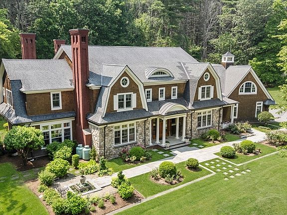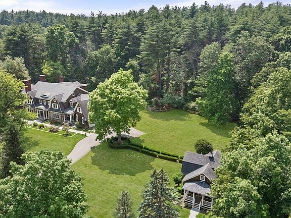 Rare Weston Estate – Set on over 2 acres of manicured grounds abutting miles of conservation land and trails, this extraordinary 12000 sq ft residence offers unmatched privacy with easy access to Boston and Cambridge. Built by premier builder Sanford Custom Homes and meticulously maintained, the estate features 6 ensuite bedrooms and exceptional craftsmanship throughout. Grand entertaining spaces include a coffered ceiling living room with limestone fireplace, formal dining room with a gold leaf ceiling, a richly paneled mahogany office with wet bar, and a screened porch overlooking lush gardens. The chef's kitchen boasts custom cabinetry, Wolf and Viking appliances, a large island, and a sun-filled breakfast area that opens to an expansive family room. A separate 3-bedroom guest house with full kitchen and 2 baths adds flexibility. This magnificent gated estate offers the perfect balance of luxury, comfort, and timeless elegance is an exceptional offering.