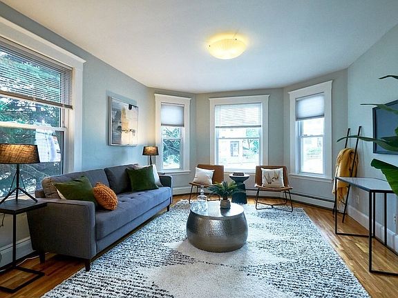 Perched atop Winter Hill sits this amazingly spacious +/- 1274 sf 2 bedroom/ 2 bathroom condominium and is undoubtedly one of the best values in Somerville! Large Living room, formal Dining room with charming hutch, original moldings and oak hardwood floors throughout offers wonderful entertaining space. Updated eat-in kitchen with maple cabinets, granite countertops, stainless steel appliances (faucet, dishwasher & washer/dryer replaced in 2019), gas cooking, pantry and access to in-unit laundry. Two sizable bedrooms, tiled bath and study complete the first floor. Private entrance to lower level full bath and bonus flex space offers so much potential for a home gym, office or media room for gaming and movies! 1 car tandem parking & common storage. A side yard of mature Pine trees create great privacy all year round! Convenient to Magoun Sq, Winter Hill Brewery, Assembly Square Mall, Highway 93 for commuting and exactly .5 miles to proposed Green-Line stop on Lowell Street!