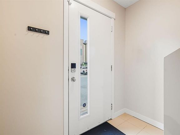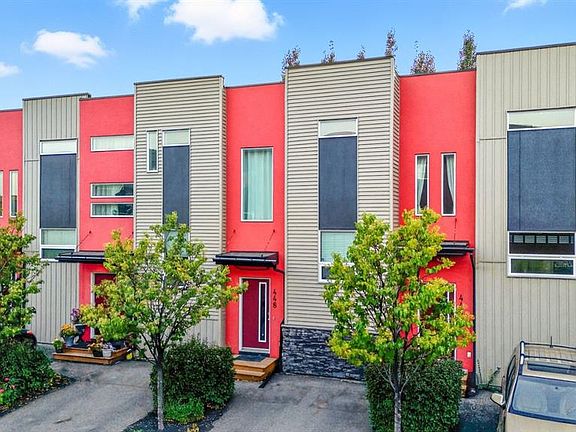 Welcome to this stylish and well-maintained 3-level townhome, located in the vibrant community of Coventry Hills. Just steps from schools, shopping, restaurants, public transit, and with quick access to both Deerfoot and Stoney Trail — convenience at its best. Offering 2 bedrooms, 2 full bathrooms, and over 1,200 sq ft of total living space, this home is designed for both comfort and functionality. The main level features contemporary finishes throughout — including smoke grey engineered laminate flooring, granite countertops, glass tile backsplash, dark cabinetry, stainless steel appliances, and high-profile baseboards. The galley-style kitchen flows into a cozy dining nook and a bright, west-facing living room. Step out onto your private west-facing balcony, perfect for evening sunsets and entertaining. The top floor is dedicated entirely to the primary retreat, featuring a spacious bedroom, 4-piece ensuite with granite, a generous walk-in closet, and a second private balcony — also west-facing for tons of natural light. On the lower level, you’ll find a comfortable second bedroom, a full 3-piece bathroom with walk-in shower, stacked laundry, storage space, and utility room. Includes one assigned parking stall directly out front, plus plenty of visitor and street parking. This is a well-managed complex with low condo fees, offering excellent value for first-time buyers, downsizers, or investors. This home shows beautifully and is move-in ready. FURNITURE NEGOTIABLE! Virtual tour available!