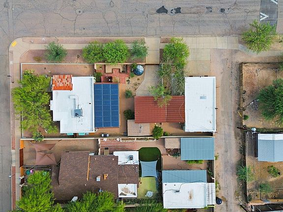 Charming historic bungalow with income potential near the University of Arizona and Downtown Tucson! The main home offers 2 bedrooms, 1.5 baths, beautiful real wood floors, and stylish modern updates while maintaining its vintage charm. A separate 720 sqft guest house includes a studio and a 1-bed/1-bath apartment, each with its own entrance, patio, and electric meter. Enjoy fully owned solar, three total meters, and a 2-car carport with a solar-powered gate. Private outdoor shower, rain barrel, and inviting outdoor spaces make this property perfect for rentals, Airbnb, or multi-generational living.