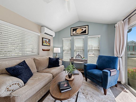 Turnkey ready to move in all the interior furniture is included! Perfect retirement or second home bright and open floor plan, you will feel the comfort of home. Relax on the front porch! Built in 2018!! Located in a 55+ community for a low HOA of $70 a month. Centrally located close to shopping, the recreation center, restaurants and more. Extra sq. ft. includes the laundry area with washer, dryer and loads of storage space. Well maintained community. A must to see. Can be financed!