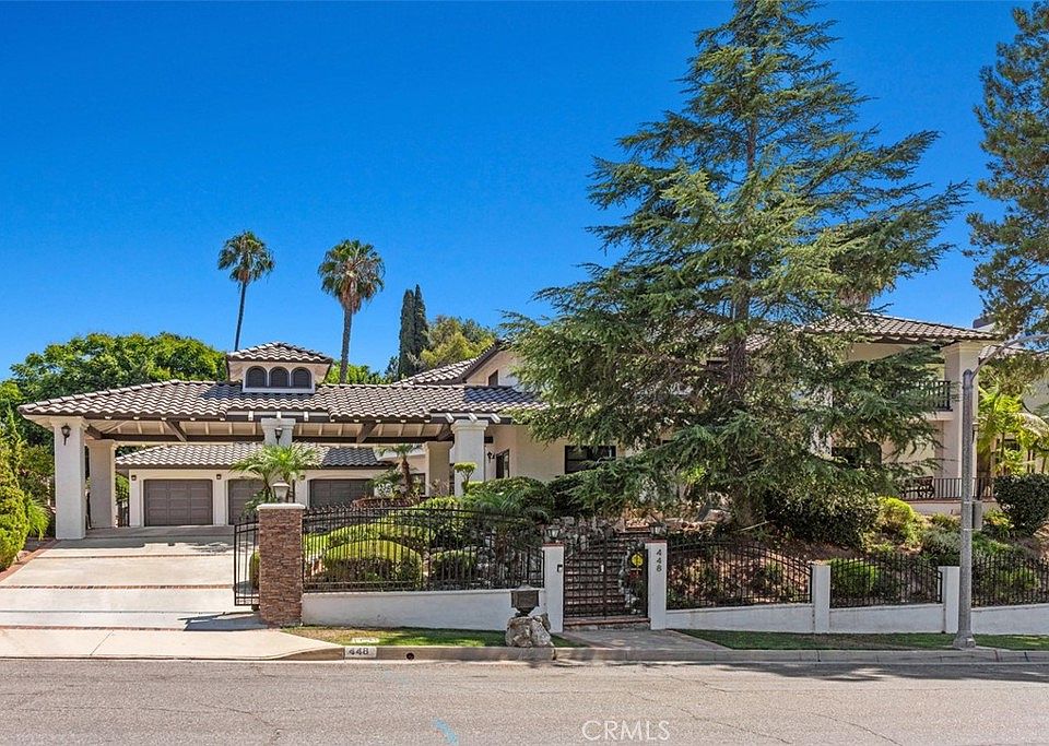 Welcome to this Exquisite custom-built Mediterranean home, perfectly situated on a coveted corner lot in the highly desirable Sunny Hills-Laguna Lake neighborhood. Spanning an Impressive 4,529 square feet, this thoughtfully designed estate offers 5 bedrooms, 4.5 bathrooms situated on 18,645 square feet of land. As you approach the home, a Private Gated driveway leads to a charming Porte-Cochere, a 3 car garage, and a spacious patio entry. Step through the grand double doors into a Magnificent foyer that sets the tone for the home's luxurious ambiance. Formal living room features high ceilings, a striking fireplace, and floor-to-ceiling windows that flood the space with natural light. Formal dining room offers picturesque views of the backyard and is adorned with a beautiful chandelier. This space gives room for a table of any size, allowing an ideal setting to enjoy memorable meals during both intimate or large gatherings. The gourmet kitchen is a Chef's dream, equipped with a sub-zero refrigerator, a 6-burner range with a pot filler, ample counterspace, and a sunny breakfast nook. Nearby, the spacious family room boasts a built-in entertainment center and expansive views of the backyard. A downstairs ensuite bedroom provides privacy and convenience, making it ideal for multi-generational living or guest accommodations. Ascend one of two staircases to the upper level, where a loft overlooks the formal living room and opens to a balcony through French doors. The upstairs office offers a versatile workspace. Primary suite is a private sanctuary featuring a cozy fireplace, a spa-like bathroom, walk-in closet, and balcony access with stunning views of the backyard. Three additional upstairs bedrooms, all with ensuite bathrooms, offer comfort and ample space. Extremely private backyard is an entertainer’s paradise. Highlights include lush landscaping, a sparkling pool and spa, a covered outdoor kitchen with concrete countertops, BBQ, refrigerator and sink. Follow tranquil pathways to the gazebo overlooking a koi pond with a cascading waterfall. Enjoy the putting green, lounge by the pool, dine al fresco or host a soiree in this outdoor oasis. Additional features include new roof 23', exterior paint 23', PAID SOLAR 23', a laundry, pantry and mudroom. Both the downstairs bonus room and office have potential for conversion into additional bedrooms, enhancing the home's flexibility. Served by award-winning schools:Laguna Road, Parks, and Sunny Hills. No HOA fees.