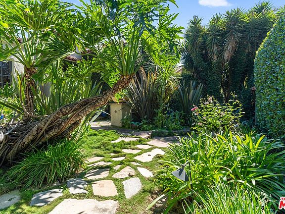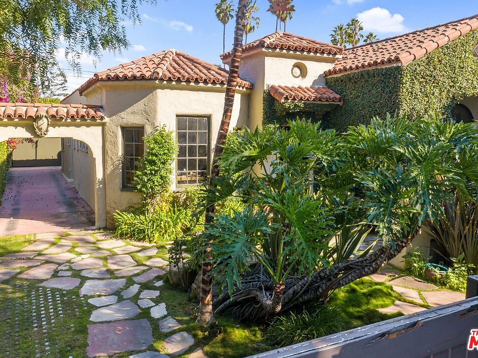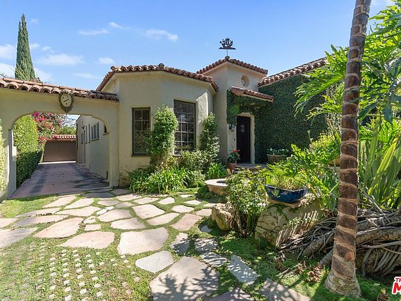 A stone's throw from it all take refuge behind the exterior gates of this lushly landscaped emotional 3 bedroom 2 and 1/2 bath Spanish home in prime Beverly Grove. Inside this spacious, character filled mid-city home delight in its high coved ceilings, step down living room, Batchelder wood burning fireplace and large light filled windows. Dine formally overlooking the flower garden or al fresco in the private yard. The airy kitchen with high-end stainless appliances works for all chefs. A spacious en-suite master offers double closets, French doors and double sink vanity with separate bath and shower. Two other generous sized bedrooms for family or home office share a classic Spanish tiled bath. Chimney, plumbing, sewer line, roof, HVAC, attic insulation, foundation, gate motor, garage and alarm system all upgraded or improved. Some exterior freshly painted include gates, doors and decks. Zoned R2 allowing flexibility for owners to reimagine, renovate or redo. Special opportunity.