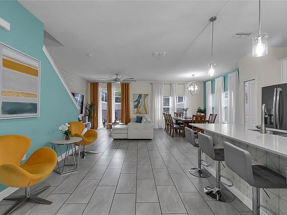 Fully Furnished Townhouse for rent in Champions Gate Resort. Welcome to this stunning, fully furnished 5-bedroom, 4-bathroom townhouse located in the resort community of Champions Gate. This spacious home features an open-concept living area, a modern kitchen with sleek countertops, and stainless steel appliances. A washer and dryer are included for your convenience. Step outside to a screened-in pool deck perfect for entertaining guests or enjoying a relaxing afternoon. Residents enjoy access to an array of world-class amenities, including an 18-hole championship golf course, a tennis complex, pool, a lazy river and splash park, a state-of-the-art fitness center, a business center and movie theater, a tiki bar with indoor/outdoor dining, and volleyball courts. Conveniently located just minutes from major highways, top-rated schools, and Orlando International Airport, this home is minutes from Walt Disney World and close to Champions Gate Downtown.