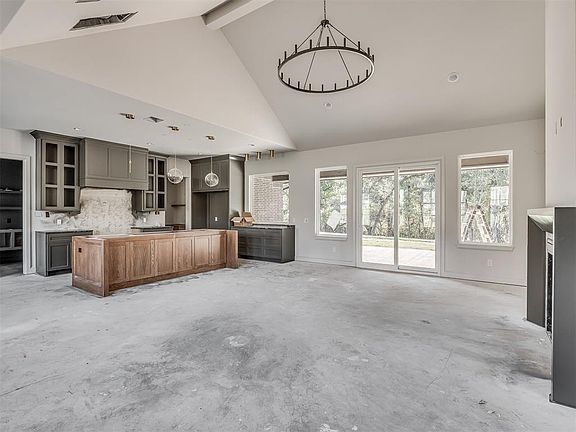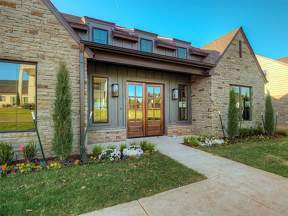 This brand new masterpiece by Bear Creek Homes perfectly blends timeless architecture with rich, modern design. Located in the gated Timberland Creek community, it’s nearing completion and ready to impress with its elevated craftsmanship and thoughtful details throughout. The exterior sets the tone with a mix of materials to create a sophisticated look that is both classic and current. Inside, the open living, kitchen, and dining areas flow seamlessly together, creating a space that feels expansive yet inviting. A vaulted ceiling with wood beams and designer lighting draws attention upward, while large windows bathe the room in natural light. The kitchen is anchored by a custom island with warm wood tones, quartz surfaces, and luxury appliances, complemented by a striking finishes. The interior design strikes the perfect balance between warmth and depth with a perfectly moody mix of textures, colors, and materials. From the layered cabinetry finishes to the contrasting stone and wood details, every element feels intentional and refined. The primary suite is a showpiece all its own. A spa-inspired retreat features dual vanities, a walk-through shower, a freestanding soaking tub framed by a vertical wood accent wall, and elegant designer lighting. The oversized closet connects directly to the laundry room for everyday convenience. Three additional bedrooms and a dedicated study offer flexibility for any lifestyle. Upstairs, over three hundred square feet of unfinished space allows for future expansion — ideal for a bonus room, media area, or storage. Out back, enjoy wooded privacy and a covered patio designed for relaxing evenings or weekend gatherings. Built with intention and quality, this home is sure to make you fall in love. Located in Edmond Schools. Welcome Home!