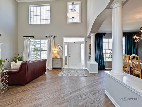 Have the best of both worlds inside and out in this amazing Winchester model upgraded to offer the maximum in entertaining, or simply a peaceful place to call home. Quietly tucked away deep in the community this gorgeous colonial backs to an abundance of natural wildlife and landscape. Enjoy quiet evenings on the patio with masonry outdoor fireplace and hot tub. Welcome family or guests in the stately foyer boasting newly refinished hardwood flooring, gas fireplace in living room, huge two story family room with custom wet bar and built in entertainment hub. Spacious kitchen has stainless appliances, white cabinetry, Corian counter tops & generous pantry. First floor office ideal for the at home executive! Four spacious bedrooms including luxury master bath plus and jack & jill hall bath. Full basement has finished flex room ideal for crafting, or the hobbyist. Stubbed for basement bath, this home offers equity potential! New front entry door 2021, new driveway 2020, new patio slider 2020, new microwave and double oven 2020, new roof 2018,sump pump 2016, water heater 2018! Show with confidence, this home is truly warm and welcoming!