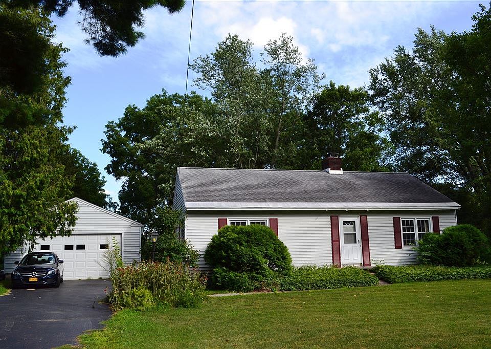 Affordable Queensbury ranch with beautiful backyard. Needing some tlc, this home has many items done with great potential. Carpeting is over hardwood. Furnace, hw heater, roof and windows are all newer. Pellet wood stove. Vinyl sided both house and garage. Garage has additional back bay ideal for lawn mover or motorcycle storage with OH door. Landscaping is nice and has space for gardens and a couple valuable walnut trees. Lot backs up to acres of county airport land. Crawl space is easily accessible. Public utilities. A fantastic opportunity! Easy to show.