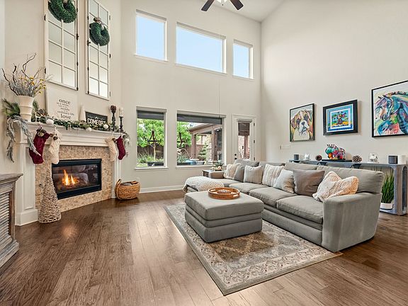 Luxury awaits you in this beautifully designed 4-bedroom, 3.5-bath home in the highly desirable Eastlake community, perfectly situated on a quiet cul-de-sac with enhanced privacy due to its exceptional lot placement and the absence of a neighboring home on the right. Located just minutes from DFW Airport, as well as premier shopping and dining, this home also sits across from the sparkling pond, green space, and walking trails, truly a location that checks all the boxes. Inside, you’re greeted by a stunning spiral staircase, engineered hardwood floors, and soaring vaulted ceilings that set the tone for the home. The front room offers flexibility such as a music room or additional living or dining space and features a hidden office, ideal for working from home. The open-concept, eat-in kitchen is a chef’s dream with an expansive island, gas cooktop, beverage refrigerators, and abundant built-in cabinetry. The light-filled living room showcases a handmade floor-to-ceiling fireplace and walls of windows that flood the space with natural light. The primary suite is conveniently located downstairs and features a soaking tub, glass-enclosed shower, dual vanities, and two spacious walk-in closets, one with direct access to the laundry room. Upstairs, you’ll find three additional bedrooms, an oversized game room, and a media room connected by a stylish bar with a beverage refrigerator and decorative barrel accents. Step outside to your own private retreat, complete with a custom designed outdoor kitchen, covered living area with skylights, and a charming brick wood-burning fireplace, all enhanced by the calming sound of a water fountain. This home offers the perfect blend of elegance, comfort, privacy, and convenience.