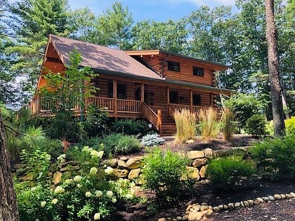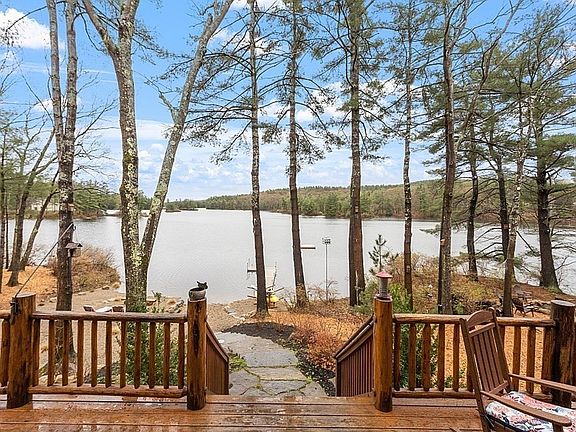 Stunning Interior Designer’s real hand-hewn Montana pine log home w/ over 700’ lake frontage boasting stunning views of forever wild conservation land. Enjoy wrap around covered porch w/ NEW hot tub & outdoor shwr. Goshen stone steps bring you through professionally landscaped & secluded gardens that lead to private beach & dock. Open concept interior greets you w/ reclaimed tobacco pine floors, cozy wood burning fireplace, & custom high-end kitchen complete w/ AGA Elise range, induction cooktop, rough edged granite countertops, hammered copper farm sink, and Alderwood cabinetry. 2 lg bdrms w/ full bath complete first floor. Rough-hewn log steps bring you to spacious master suite w/ lg WIC, full bath w/ cast iron soaking tub, custom stone & slate shwr & hammered copper sinks. Finished lower level includes walk-in pantry/wine closet & leads to 2 ½ car garage w/ nearby shed for extra storage. Centrally located-10 min to Mt. Wachusett ski/hike, 1hr drive to Boston, & 90 min to Bershires.