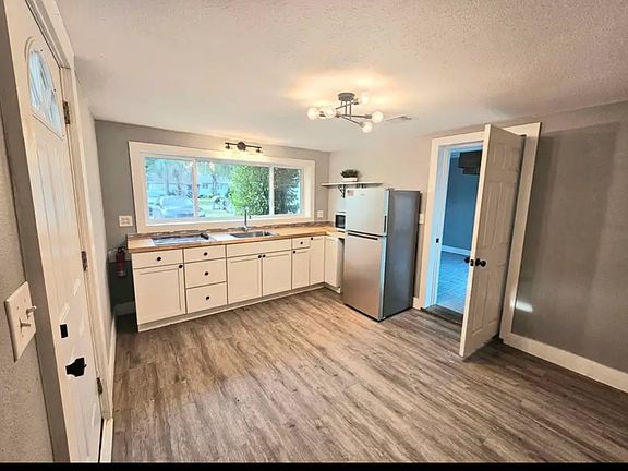 Private entranceCountertop convection microwavePrivacy fenced-in backyardStackable washer and dryerFullsize fridgeButcherblock countertopsSliding glass door